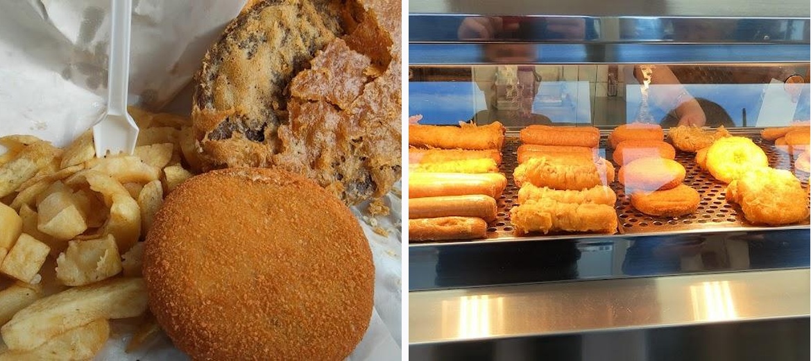 I recommend trying the mini fish and chips with mushy peas, as well as the various pies and fritters. Their crispy fish and fluffy chips receive rave reviews.